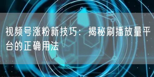 视频号涨粉新技巧:揭秘刷播放量平台的正确用法